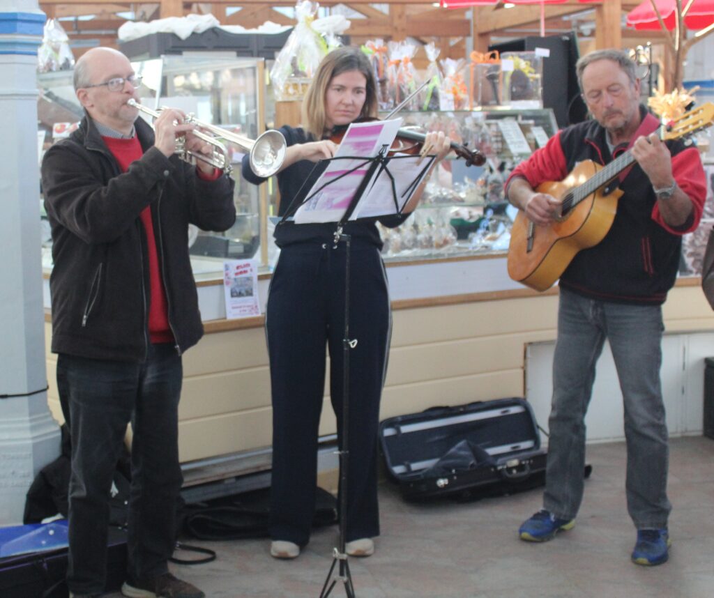 Aux Halles couvertes, le printemps s’est fêté en chanson et en instruments, samedi 21 mars. Dès 11h, le Viaduc CEC a réuni une partie des passants autour d’un “Je cherche la fortune…”. Avec, entre autres participants, des bénévoles de CGT-Retraités et une commerçante présente au marché. Des sons de guitare, de trompette et de violon ont accompagné la prestation de dix minutes. Un prochain rendez-vous est fixé au samedi 20 juin, pour, cette fois-ci, célébrer l’arrivée de l’été. Sur la même chanson, au même lieu et à la même heure.